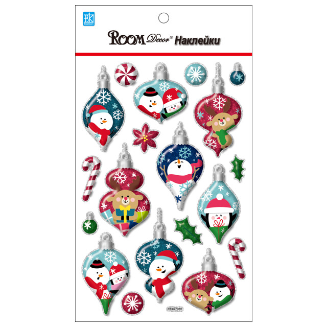 наклейка ROOMDECOR Новогодние игрушки мини 14х25см, арт.CEX2703