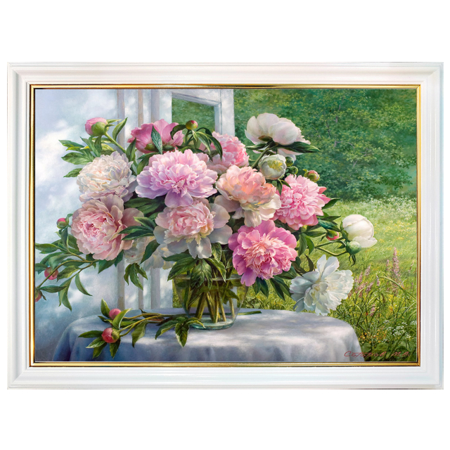 репродукция в раме ПИОНЫ У ОКНА 400х300мм бумага/МДФ