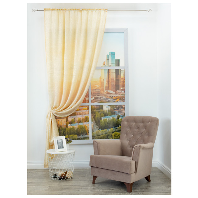штора портьерная на шт.ленте AMORE MIO тергалет 140х260см бежевая, арт.28461