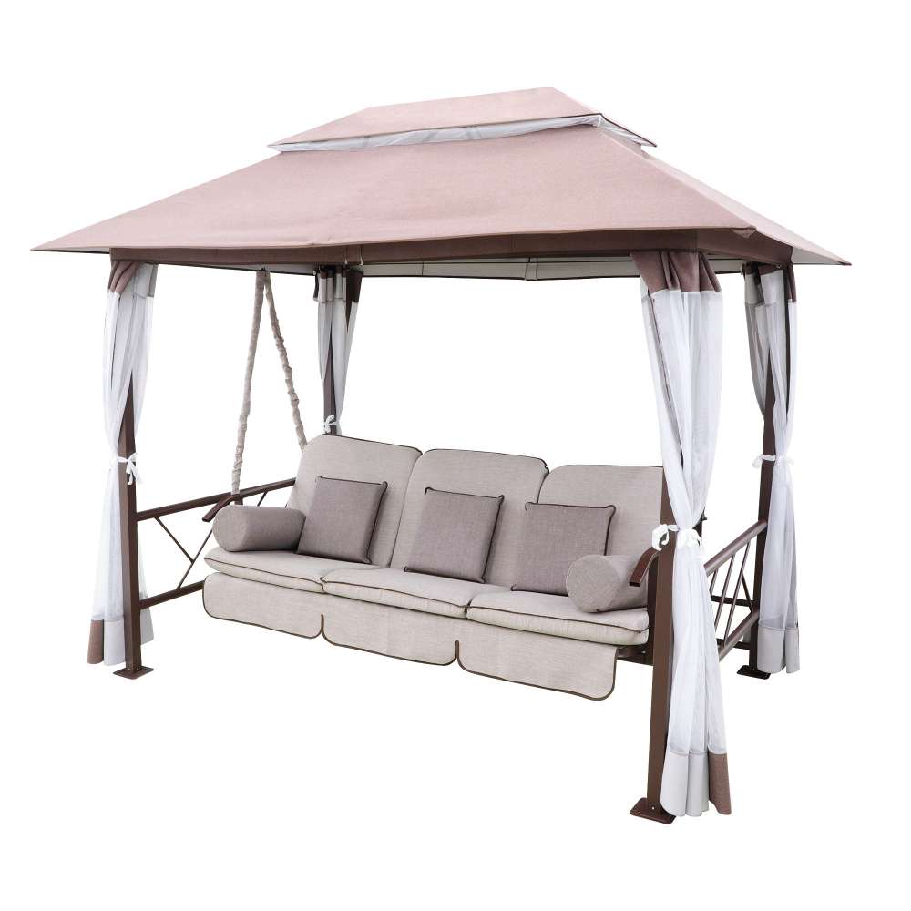 Цвет каркаса:Коричневый|Цвет обшивки:Бежевый|Длина:290|Количество мест:4|Количество упаковок:1|Коллекция/серия:Азуми|Материал каркаса:Металл|Материал наполнения:Поролон, синтепон|Материал полога/подушек:поролон и синтепон|Основной материал:Металл|Высота упаковки 1:250.0000|Длина упаковки 1:70.0000|Вес упаковки 1:130.0000|Ширина упаковки 1:60.0000|Параметры упаковки:2 коробки|Страна-производитель:Россия|Раскладные:Да|Рекомендации по уходу:Протирать влажной тряпкой без использования сильных моющих средств. Чехол и подушки можно стирать.|Ширина:200|Тип:качели-шатер|Требуется сборка:1|Тип товара:Качели|Вид товара:Качели-шатер|Выдерживаемая нагрузка, кг:300 кг|Высота:250 см